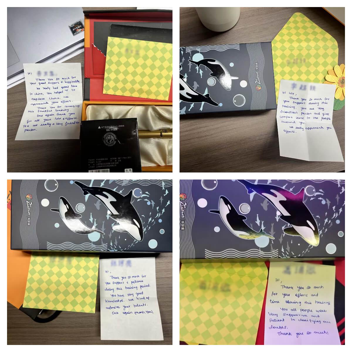 近日,开云体育为来自海外的合作伙伴开展的定制化培训项目圆满收官。在这场为期半个月的深度交流中,双方不仅碰撞出专业领域的智慧火花,更在朝夕相处中结下深厚情谊。临别之际,客户代表向我司四位核心员工赠送了象征友谊的定制钢笔,并亲笔写下四封饱含谢意与真诚的贺卡,为这段跨国合作添上一抹温情注脚。